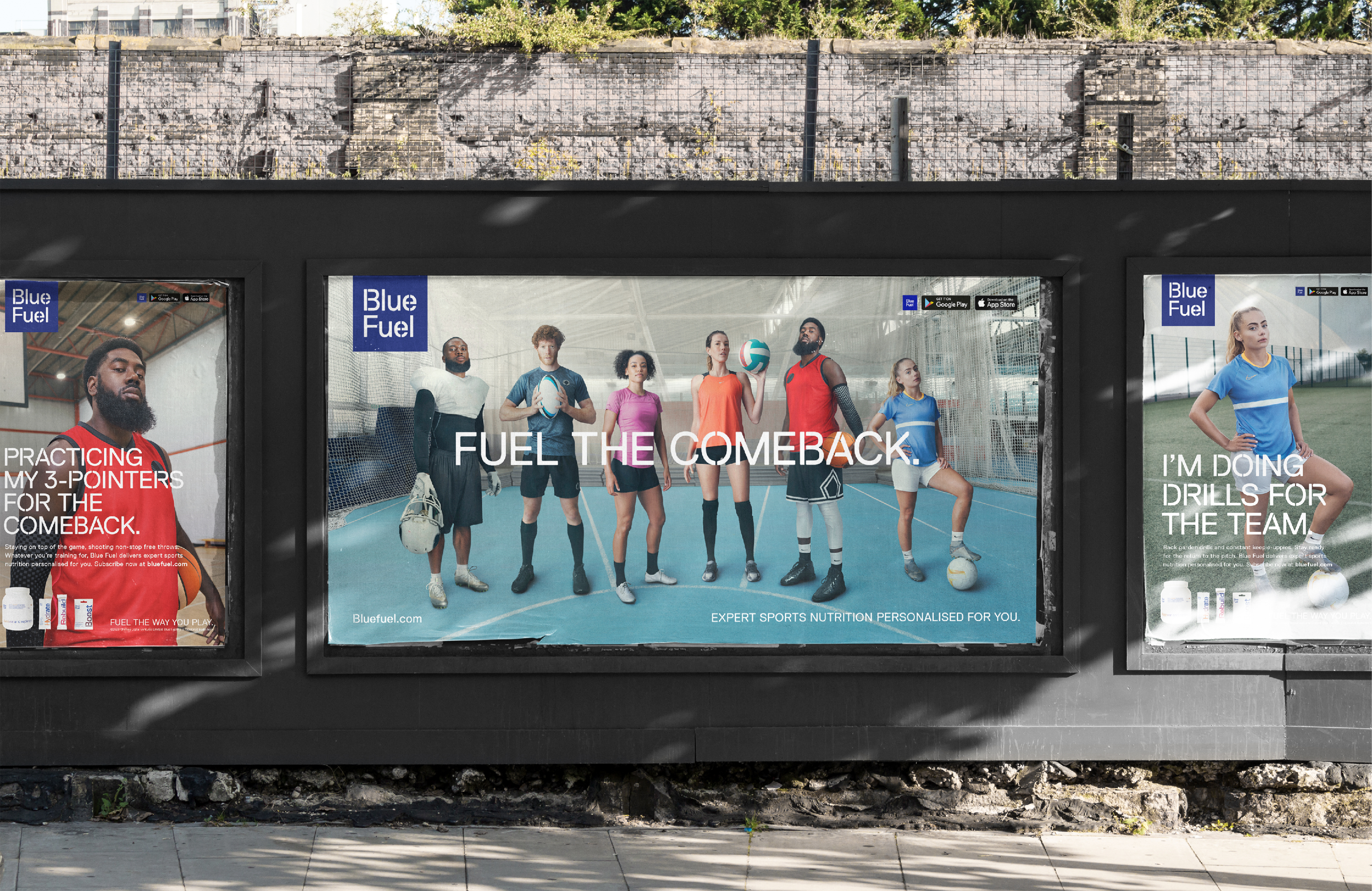 Ads for the launch of Chelsea FC’s nutrition app Blue Fuel.